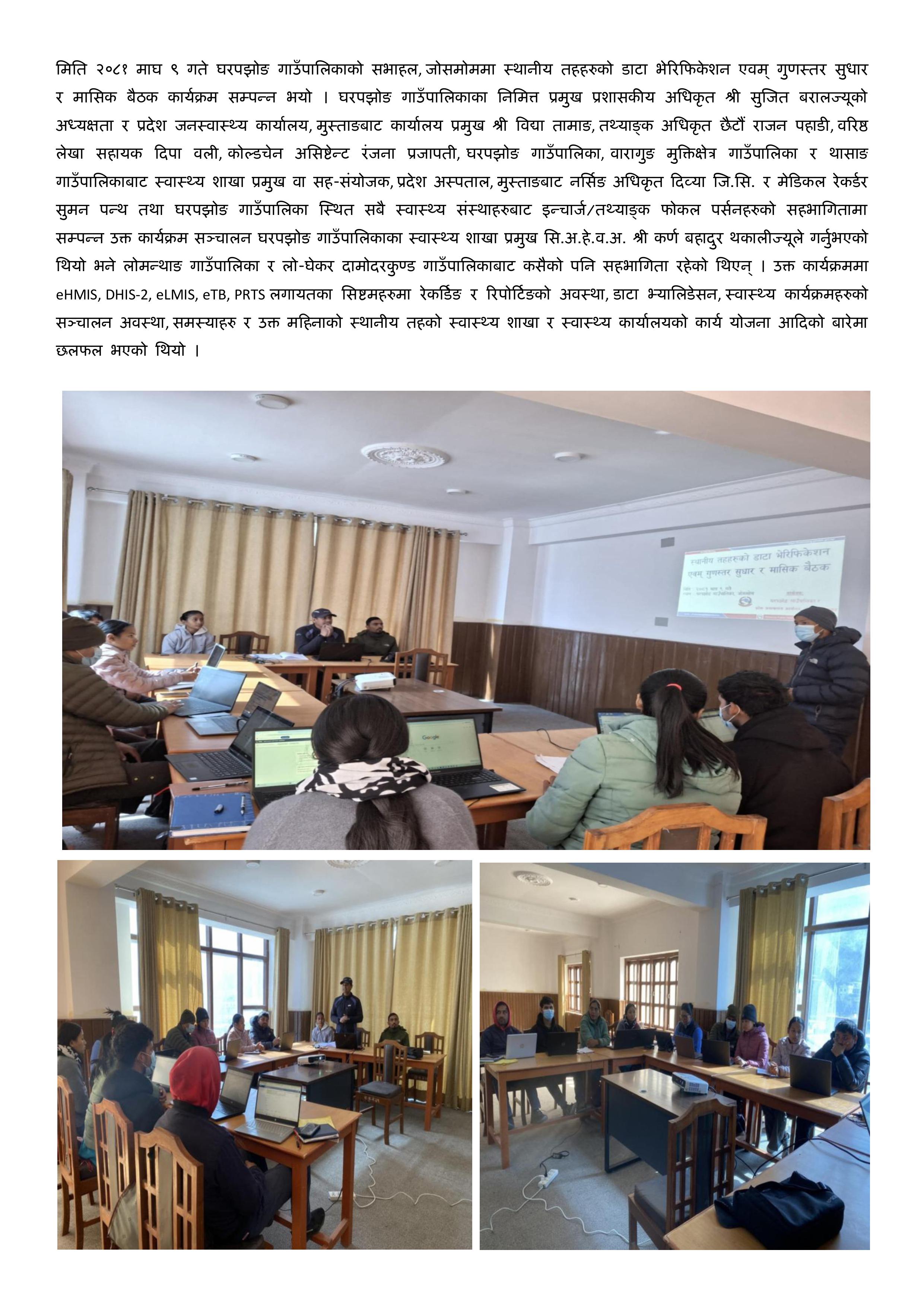 माघ महिनाको डाटा भेरिफिकेसन एवंम गुणस्तर सुधार र मासिक बैठक