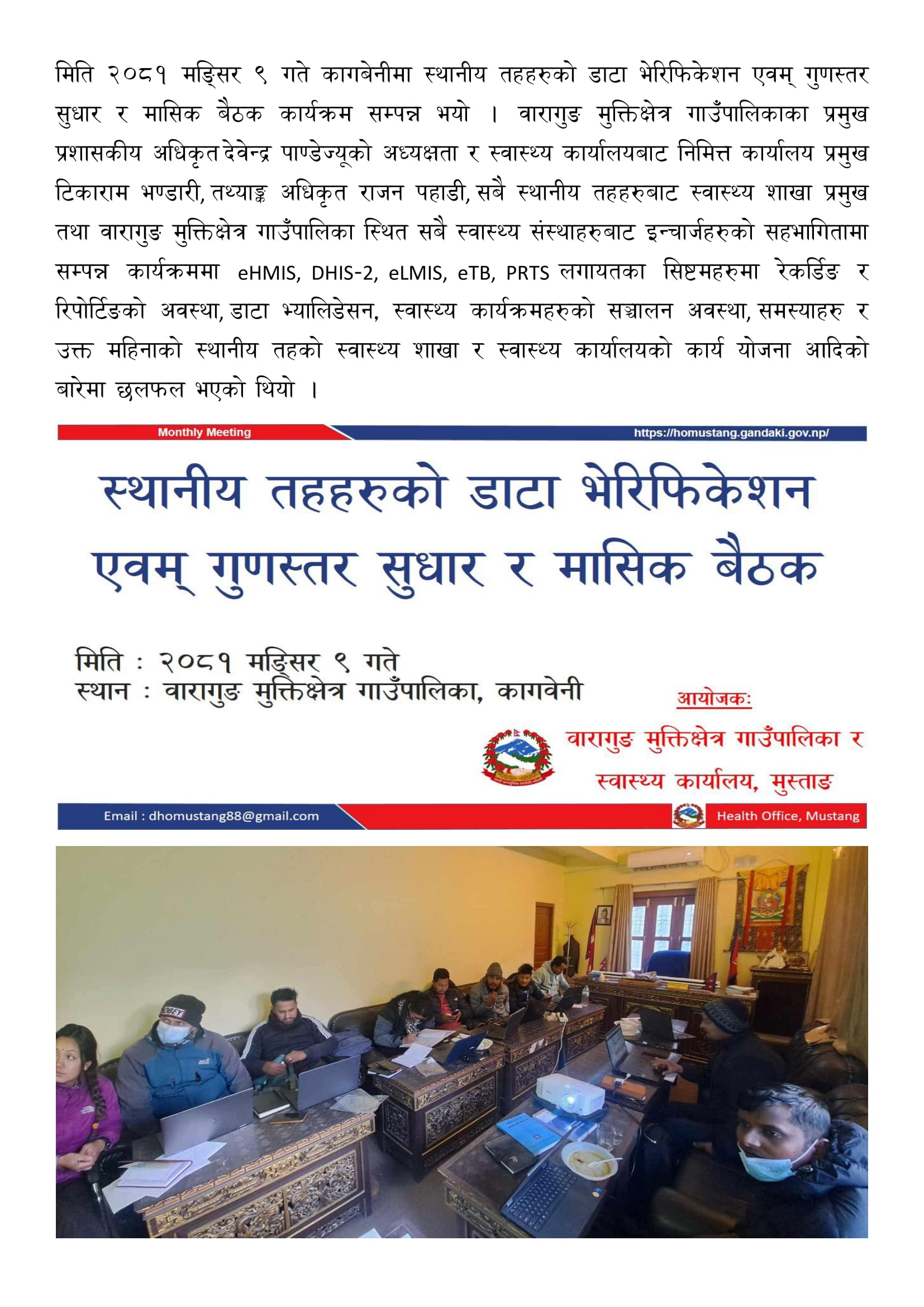 मङ्सिर महिनाको डाटा भेरिफिकेसन एवंम गुणस्तर सुधार र मासिक बैठक