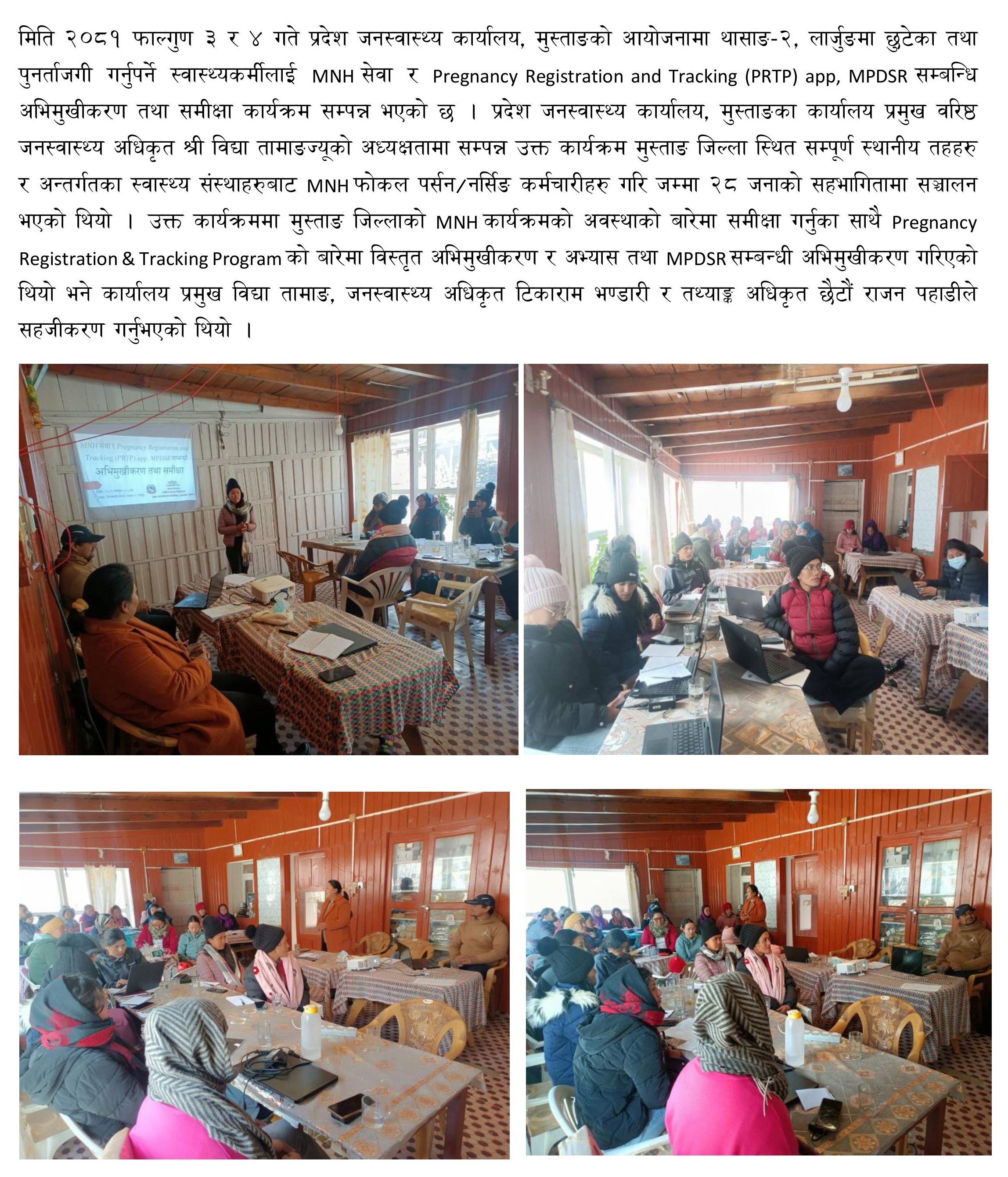 स्वास्थ्यकर्मीलाई MNH सेवा र Pregnancy Registration and Tracking (PRTP) app, MPDSR सम्बन्धि अभिमुखीकरण तथा समीक्षा