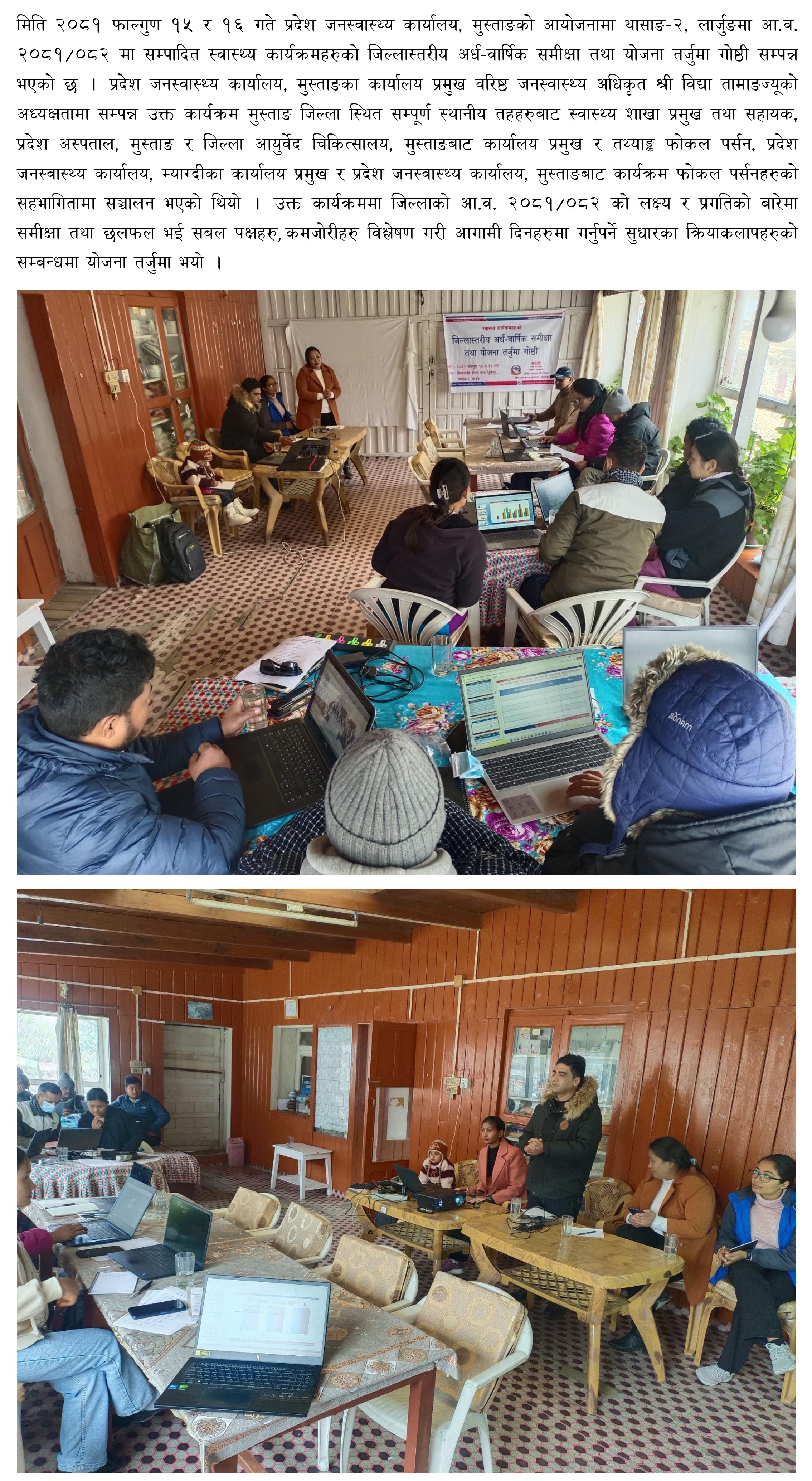 Download: स्वास्थ्य कार्यक्रमहरुको जिल्लास्तरीय अर्ध-वार्षिक समीक्षा तथा योजना तर्जुमा गोष्ठी